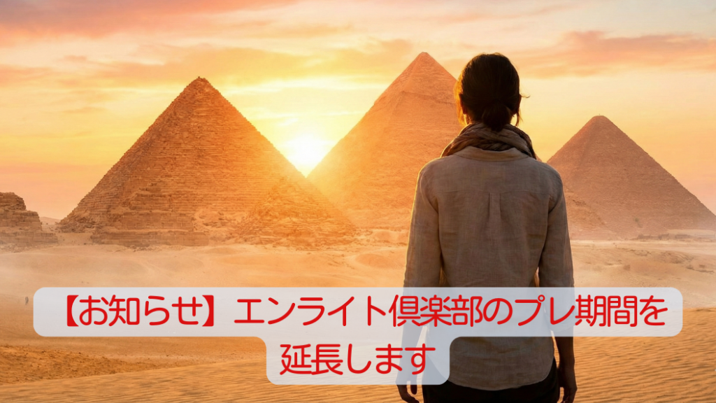 【お知らせ】エンライト倶楽部のプレ期間を延長します。私が「エジプト」で確認してくるまで待っていてください