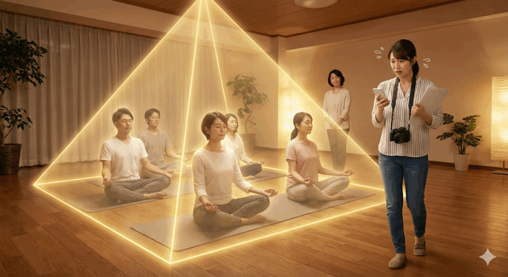 皆さんが深い瞑想に入っている最中、黒田先生には不思議なビジョンが見えていたそうです。それは、「大きなピラミッドの中に参加者の皆さんが入って守られている」という光景。
