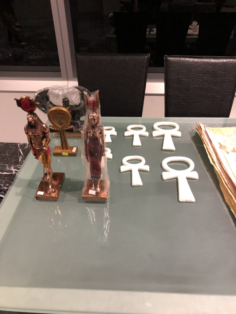 ハトホル神とセクメト神、アンクの置物