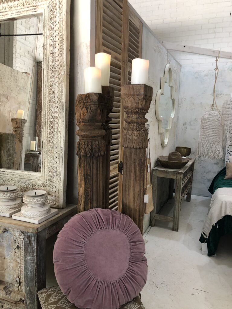 素敵な照明のお店もありました。テラスにつるすのもあり、おしゃれ。毎月開催されるマーケットも有名です。
