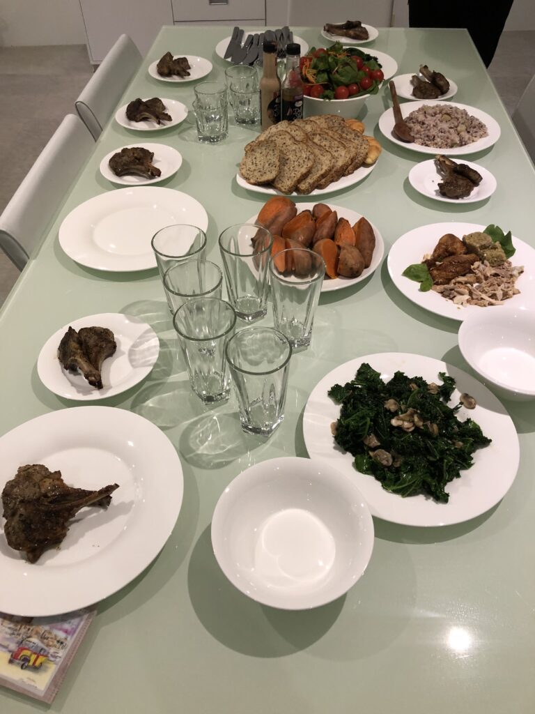 夜はこちらで、ヘルシー志向のホームパーティーがひらかれました。