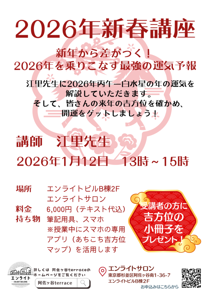 1月12日、エンライトサロンにて江里先生による「2026年新春講座」を開催いたしました。