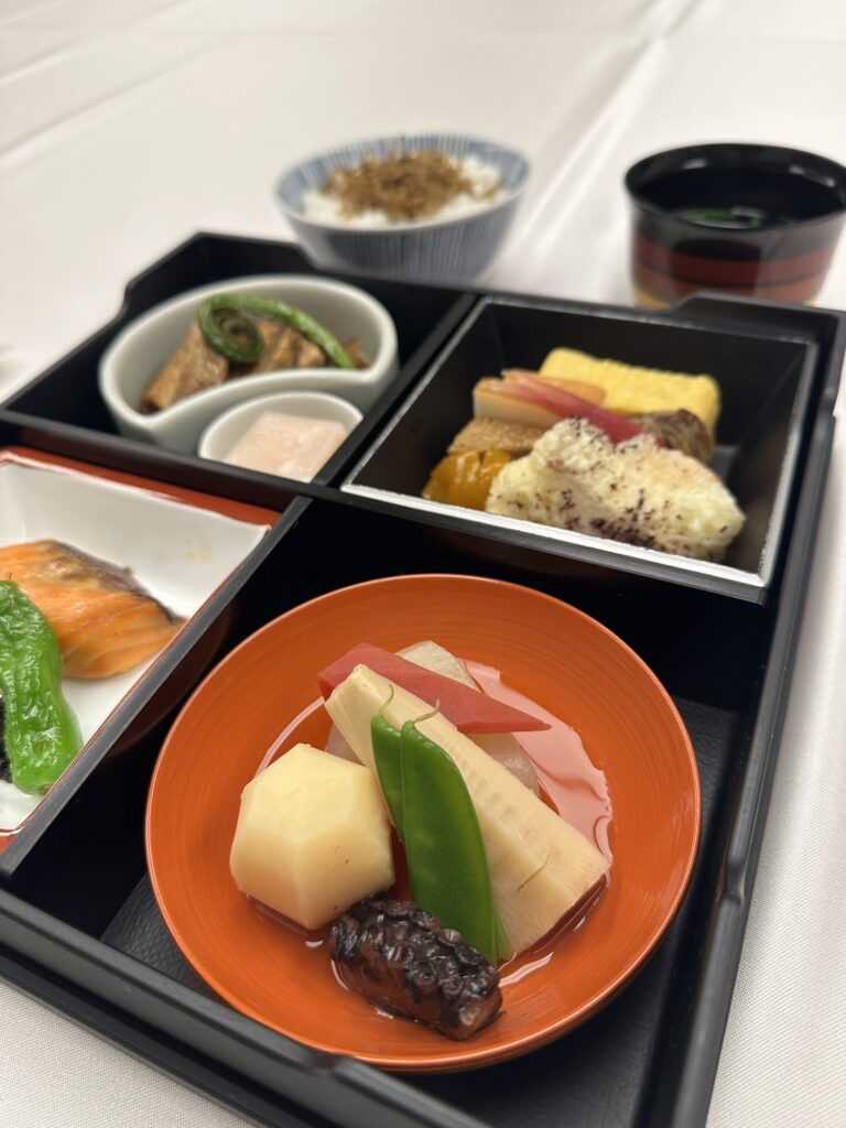 学びの後は、会館の落ち着いた個室へと移動し、ゆったりとした空間で幕の内料理をいただきました。