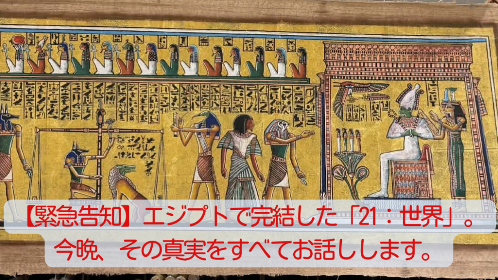 【緊急告知】エジプトで完結した「21:世界」。今晩、その真実をすべてお話しします。